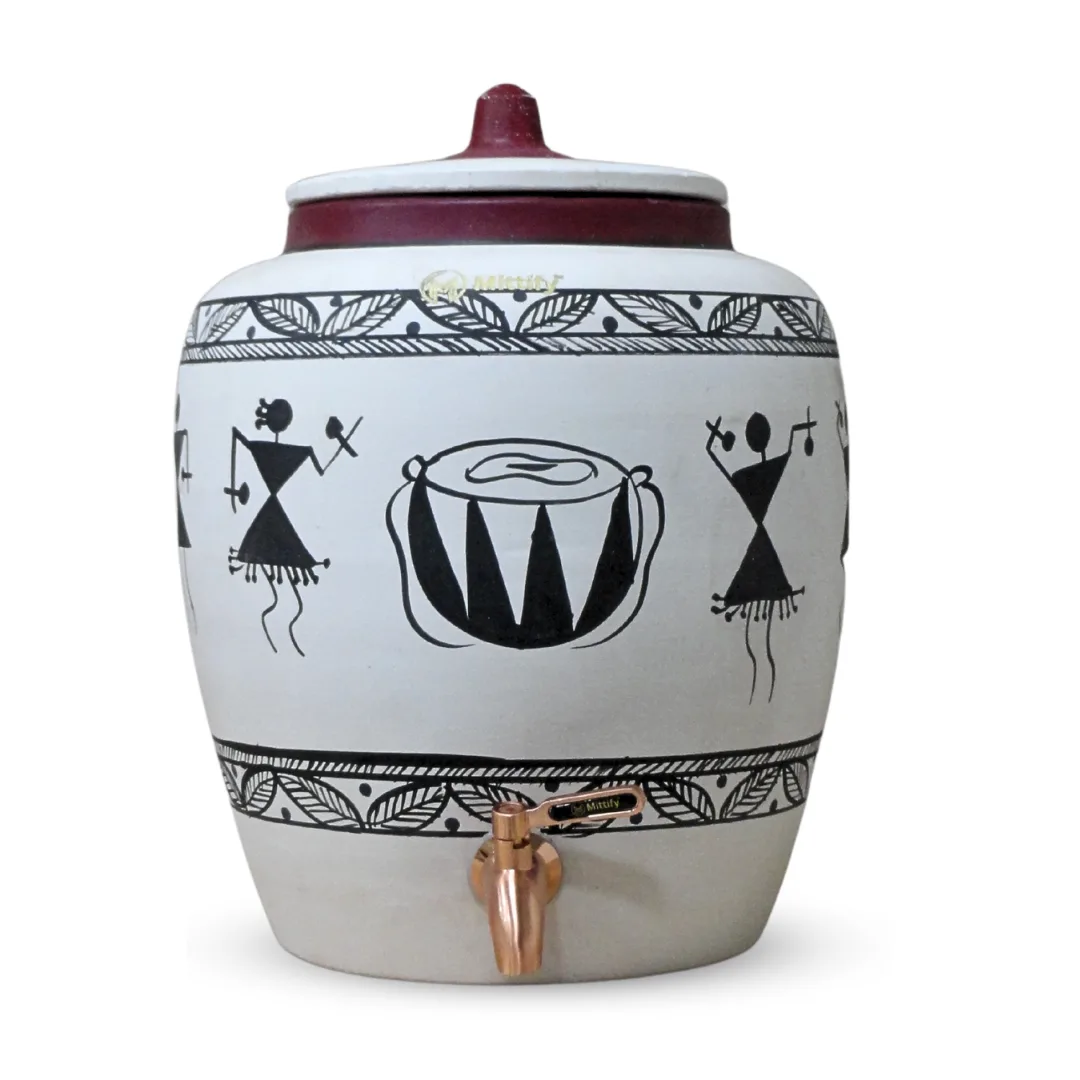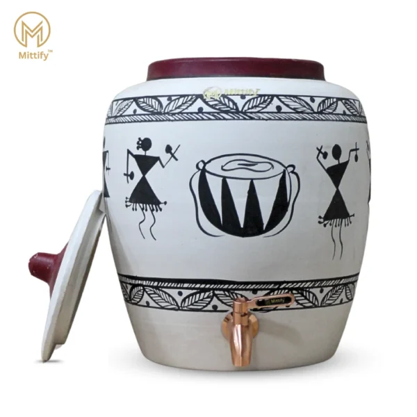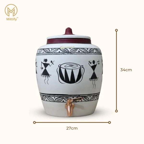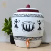 Mittify Earthen White Clay Water Pot – Warli Design with Metal Tap (11L/372oz)