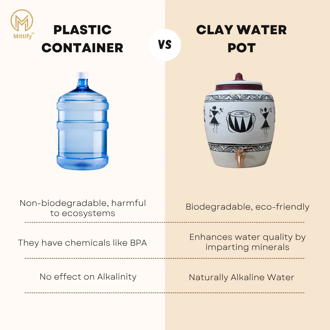 The Mittify Earthen White Clay Water Pot offers a sustainable, healthy, and aesthetically pleasing solution for water storage, combining the power of natural filtration with the beauty of cultural artistry.