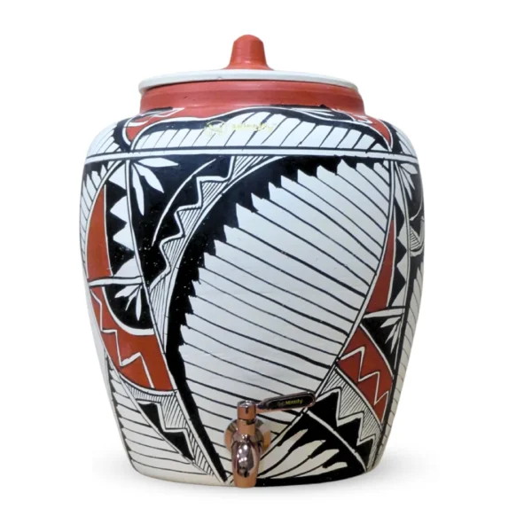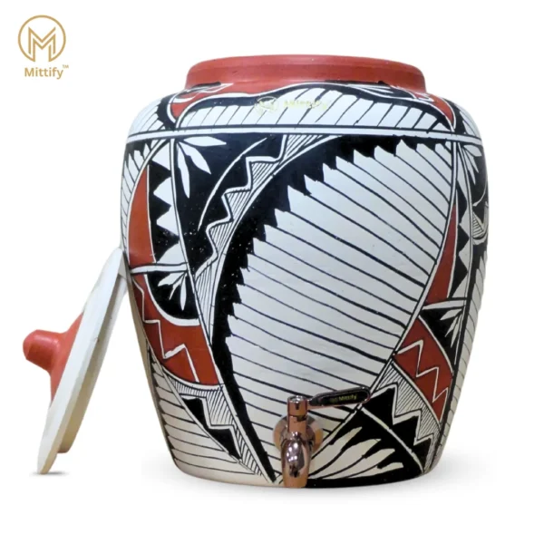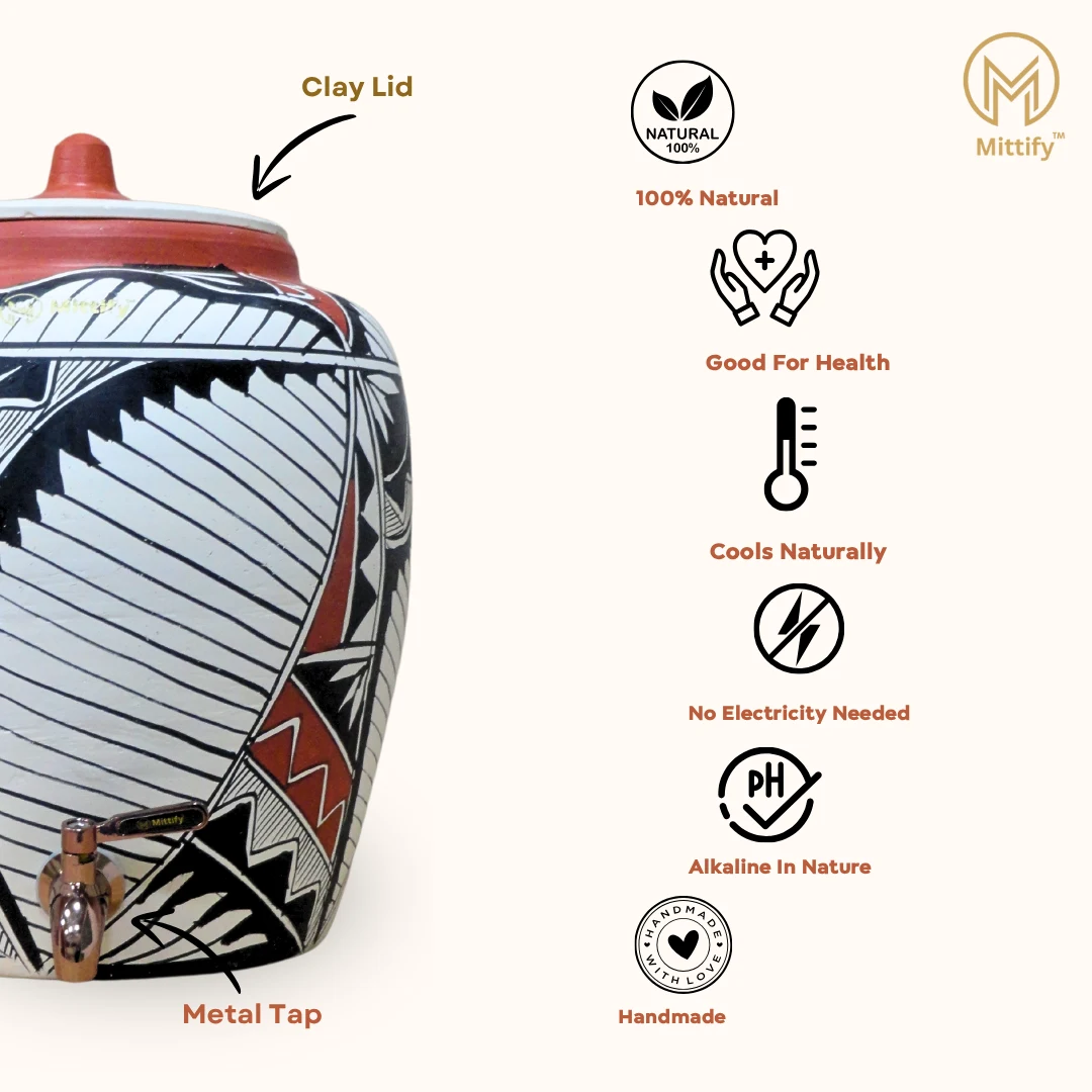 Earthen White Clay Water Pot Warp Design with Metal Tap