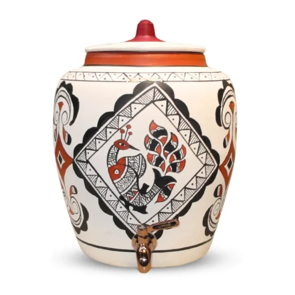 Eco-Friendly White Clay Water Pot with Elegant Peacock Design