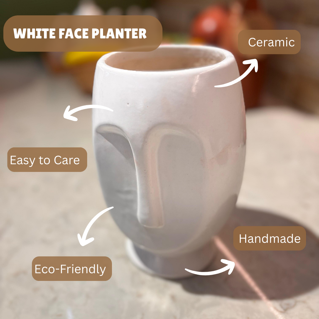 The White Big Face Ceramic Planter combines contemporary elegance with an artistic facial design, making it a striking statement piece that brings character to any space.