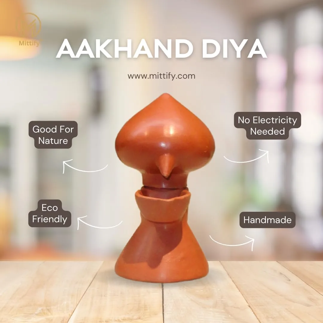 Each clay oil lamp is meticulously handmade by expert artisans, preserving the traditional methods of pottery. The intricate Akhand Diya design highlights the dedication and craftsmanship that goes into making each lamp a unique piece.