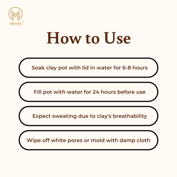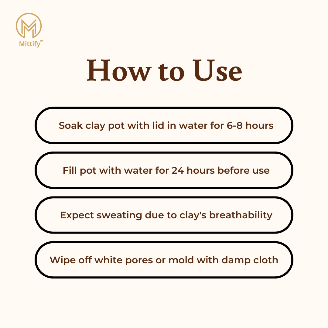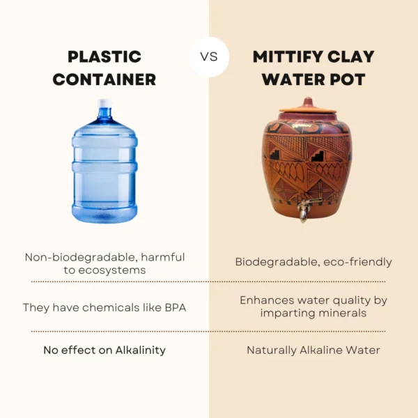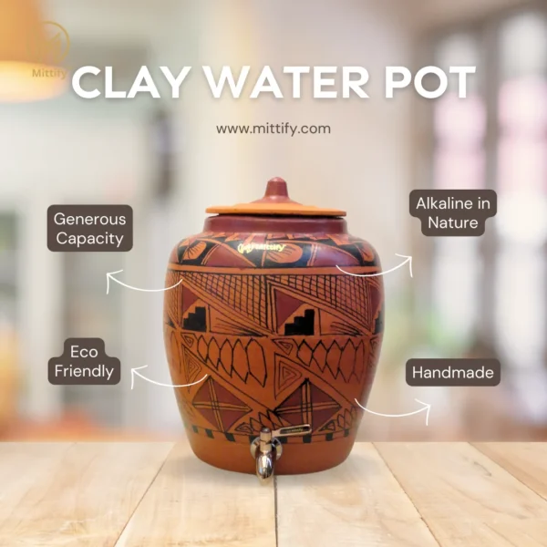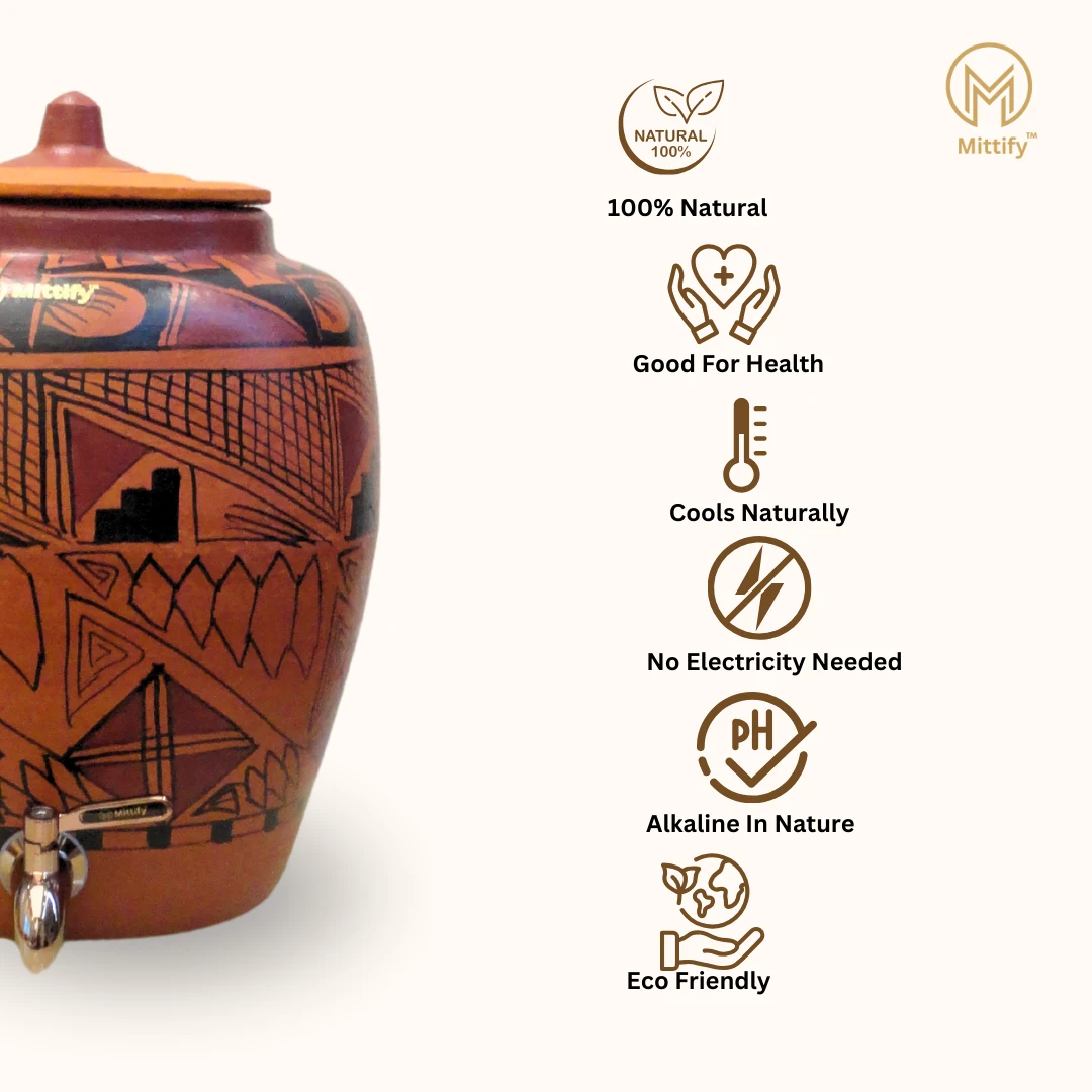 Unlike plastic or metal containers, this clay water pot is free from harmful chemicals, ensuring that your water stays pure and uncontaminated. - Health Benefits
